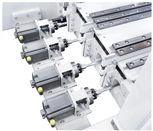 systemet kan fleksibelt tilpasse seg ulike produksjonsbehov for betongprodukter. ● Åtte vibrasjonsenheter, med mekanisk balanse individuelt innstilt av åtte servodrev ● Åtte motoraksler med elastiske koblinger ● Åtte servomotorer, hver montert på en ekstern vibrasjonsisolerende tverrbjelke på motorrammen ● Vibrasjonsbord krever ikke oljebad (miljøvennlig)