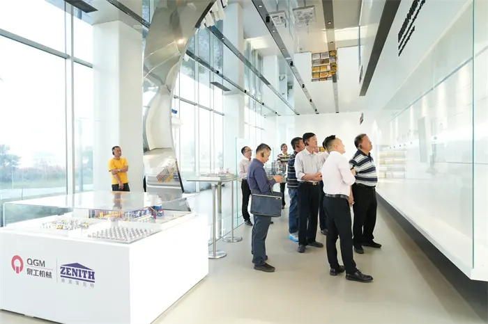 Styreleder Lin Boqian og hans delegasjon besøkte først utstillingshallen for utviklingshistorien til Quangong Co., Ltd., og gjennom grafiske visningstavler, videomaterialer og fysiske utstillinger forsto de fullt ut selskapets kamp fra starten til å bli en industrileder. Den ansvarlige for Quangong introduserte i detalj de innovative gjennombruddene som Quangong Co., Ltd. har gjort innen feltet for mursteinsmaskinutstyr i mer enn 40 år, samt bedriftsfilosofien om "håndverk skaper kvalitet, og teknologi leder fremtiden." Styreleder Lin Boqian satte stor pris på prestasjonene til Quangong Co., Ltd. ved å insistere på teknologisk forskning og utvikling og fremme industrioppgraderinger.
