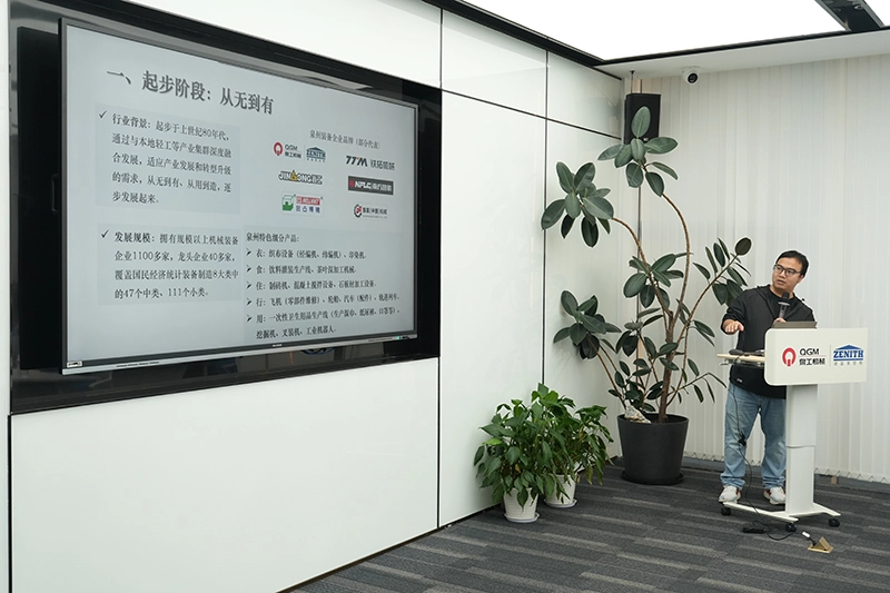 I konferanserommet forklarte ansatte fra utstyrsseksjonen ved Quanzhou kommunale byrå for industri og informasjonsteknologi den grunnleggende situasjonen, utviklingshistorien og fremtidsutsiktene til Quanzhous utstyrsindustri; en reklamevideo av Quanzhou Machinery Industry Co., Ltd. ble også vist.