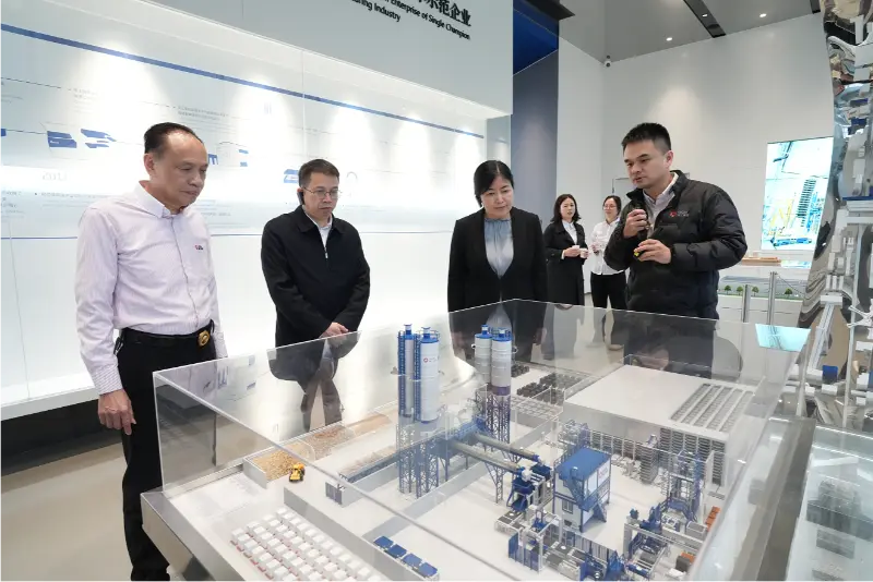 Delegasjonen turnerte først i selskapets History Exhibition Hall. Veiledet av selskapets ledere, fikk de en omfattende oversikt over Quangong Machinery Co., Ltd.s utviklingsreise som strekker seg over førti år, og undersøkte selskapets ulike utmerkelser, sertifiseringer og teknologiske prestasjoner. Delegasjonen berømmet selskapet for dets standhaftige engasjement for produksjon som en kjerneindustri og dets filosofi om kontinuerlig innovasjon, og anerkjente det som et levende mikrokosmos av den bredere utviklingen av privatøkonomien.